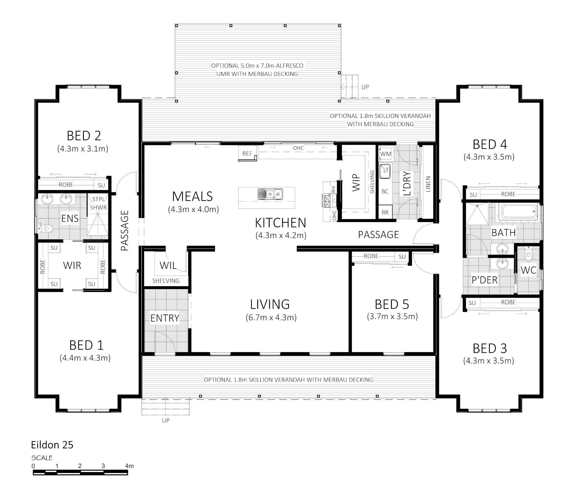 A well-appointed five-bedroom design, the Eildon 25 includes everything you need for modern living with a few classic country touches.