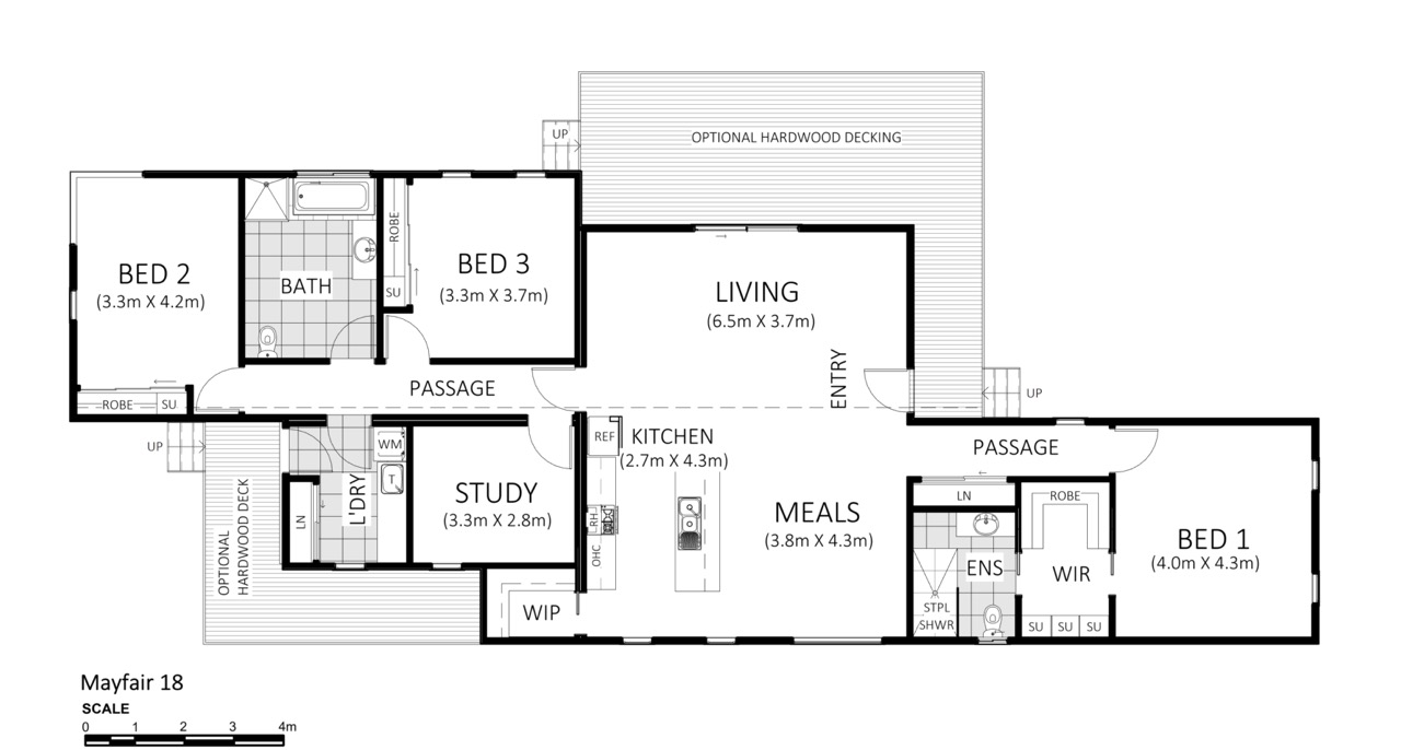 There’s plenty of space for them to stay too – the Mayfair 18 has a master bedroom at one end of the home, with a walk-in robe and ensuite it provides a private retreat for the occupants. At the other end of the home are 2 more bedrooms, both giving you plenty of storage room with their built-in robes. There’s also a large and well-appointed bathroom (with bath and shower!) for family or guests staying in these rooms.