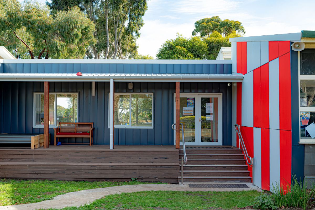 Pretect created a clearly delineated entry to the school; beautified with plantings, incorporating an access ramp and external deck offering a meeting space and transition point to the internal admin offices. School visitors are directed into the supervised Reception/Admin area which functions as a processing checkpoint and waiting space. The layout allows for further “child-safe” security measures such as a glazed “air-lock” holding visitors within the reception area whilst still permitting confidential access to the Principal and Senior Staff offices.
